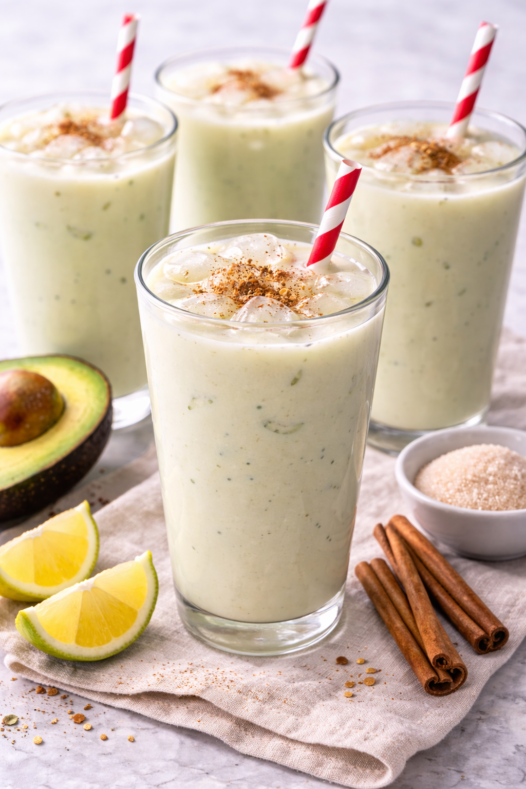 Una bebida cremosa, dulce y muy mexicana que sorprende por su suavidad y sabor reconfortante. El aguacate aporta una textura aterciopelada que se mezcla perfectamente con la leche, el toque de canela y el dulzor al gusto, creando una agua fresca espesa y refrescante al mismo tiempo. Servida bien fría, es ideal para acompañar comidas caseras o disfrutar en días calurosos como una alternativa diferente y deliciosa a las aguas tradicionales. Su consistencia tipo malteada ligera la convierte en una bebida casera, nutritiva y llena de nostalgia.