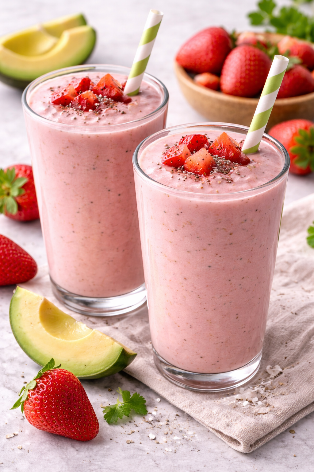 Un smoothie fresco, cremoso y naturalmente dulce que combina la suavidad del aguacate con el sabor frutal de la fresa. Es una bebida nutritiva, saciante y perfecta para el desayuno o como snack saludable. Su textura es espesa tipo malteada ligera y su sabor es equilibrado entre dulce y cremoso, ideal para quienes buscan algo refrescante pero que también llene.
